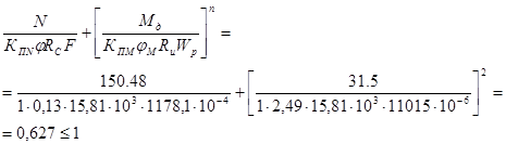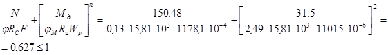 Расчет на устойчивость сжато-изгибаемого элемента (правая стойка):