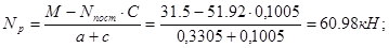 Nпост= Nпол – Р*0,5l=150.48–17,92*0,5*11=51.92 кН;