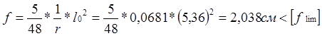 Предельные прогибы плит перекрытий при l0 < 5,7, [flim] = l0/200 = 5360/200 = 26,8 мм.