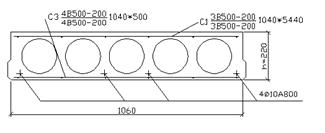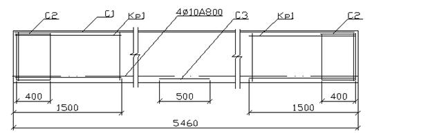 Для предотвращения образования трещин на верхней поверхности плиты от усилия предварительного обжатия на концевых участках каркасов в зоне действия максимальных поперечных сил устанавливаем дополнительные стержни Æ 10 мм класса А400 на длине 400 мм.