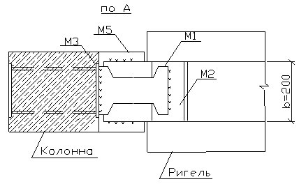«Рыбки» (M1) приваривают к закладным деталям колонн и ригелей. Для возможности последующего обетонирования в целях защиты стальных деталей от коррозии в верхней части ригелей устраивают углубления.