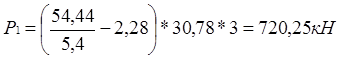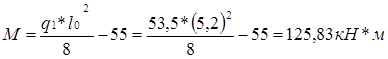 где q1 - полная расчетная нагрузка на 1 погонный метр ригеля, q1 =54,44кН/м;