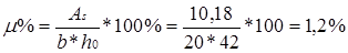 Вычисляем требуемую площадь продольной рабочей арматуры