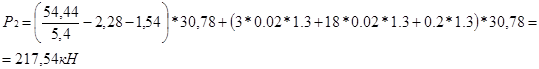 где g1 - расчетная нагрузка от веса пола (табл. 1), g1 = 1,54 кН/м;