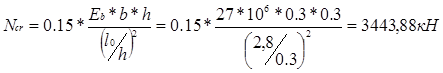 Случайный эксцентриситет еа принимаем равным наибольшему из трех значений: еа = l0/600 = 280/600 = 0,47 см, еа = h/30 = 30/30 = 1 см и еа = 1 см.