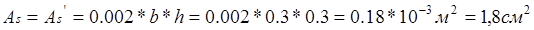 Требуемую площадь поперечного сечения арматуры определяем, исходя из минимального процента армирования,
