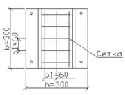 Вначале назначаем шаг сеток косвенного армирования S в пределах 60-150 мм, но не более h/3 = 30/3 = 10 см (рис. 10). Сетки устанавливаем у торца колонны на длине l которая должна быть не менее десяти диаметров продольной арматуры (10*22 = 220 мм) и не менее размера поперечного сечения h = 30 см. Размер ячеек а1 назначаем в пределах 45-100 мм, но не более h/4 = 300/4 = 75 мм. Принимаем S = 100 мм, l = 300 мм, а1 = 60 мм. Сетки выполняем из арматуры класса А400, диаметр определяем расчетом.