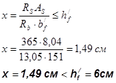 При соблюдении условия нейтральная ось проходит в полке. Тогда высота сжатой зоны (см) вычисляется по формуле: