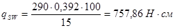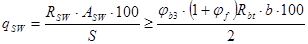 qsw — погонное усилие в поперечных стержнях в пределах наклонного сечения (Н/см);