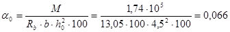 Для определения необходимой площади арматуры, укладываемой вдоль расчётного пролёта полки, подсчитываю параметр α0: