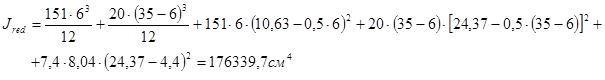 Ared = b/f· · h/f· + (h – h/f) · b + α · AS = 151 ·6 + (35 – 6) · 20 + 7,4 · 8,04 =1545,5 см2