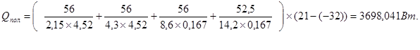 Q = (1/0,578) ×96×(20-(-32))×0,75= 6477,51 Вт;