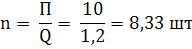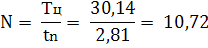 Округляем до ближайшего меньшего целого числа, учитывая перевыполнение сменного задания, при работе экскаватора N=10 машины.