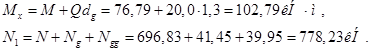 При действии момента, наиболее нагруженными оказываются сваи, максимально удаленные от центра тяжести свайного поля (в рассматриваемом случае yi=0,522). Вычисляем суммарную расчетную нагрузку на сваю в уровне подошвы ростверка и момент в уровне подошвы ростверка.