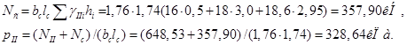 Вес условного фундамента Nc и давление на грунт по его подошве pII вычисляемпо формулам 9,41[9] и 9,42[9], используя значения удельного веса γIIi отдельных слоев грунта толщиной hi, в пределах глубины заложения условного фундамента dc (см. рис.8.23.) и нагрузку на фундамент II группы предельных состояний NII=NI/γf=778,23/1,2=648,53кН (где γf=1,2 – среднее значение коэффициента надежности по нагрузке),