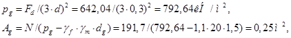 По формулам 9,23[9] и 9,24[9] определяем соответственно среднее давление под подошвой ростверка pg, площадь подошвы ростверка Ag и приближенный вес ростверка с грунтом на уступах Ng, учитывая, что здание без подвала, среднее значение удельного веса материала ростверка и грунта на его уступах γm = 20кН/м3,