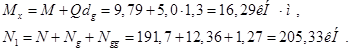 N=191,7кН, М= 9,79кН*м, Q=5кН.