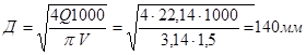 Диаметр труб определяют по формуле