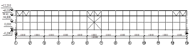 Рис. 8.1 Схема вертикальных связей между колоннами и между стойками фонаря