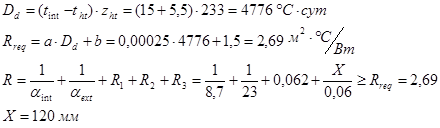 Расчетные формулы, а также значения величин и коэффициентов приняты по СНиП 23-02-2003 "Тепловая защита зданий".