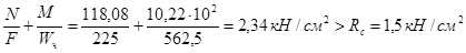 Прочность сечения верхнего пояса обеспечена. Назначаем сечение верхнего пояса – брус 150x200 мм.