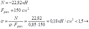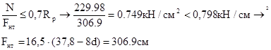 Для крепления раскосов в узлах устанавливается металлический башмак, к которому крепятся раскосы. Площадь опирания башмака проектируем из условия смятия верхнего пояса.