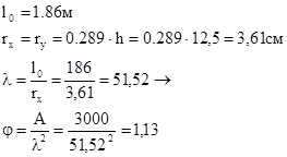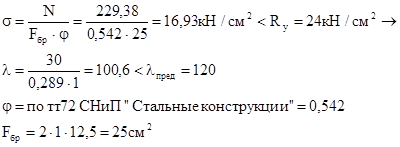 Проверяем стальные накладки на сжатие по устойчивости в плоскости перпендикулярной плоскости планки: