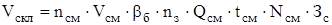 Вместимость складов заполнителей и цемента определяем по формуле:
