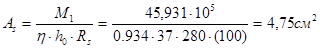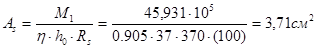 , то нейтральная ось пересекает полку и пролетное сечение балки рассчитывается как прямоугольное. Определение площади сечения нижней рабочей продольной арматуры в крайнем пролете балки: