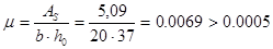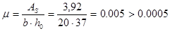 Принимаем 2ф18 класса А-II c As= 5,09 см2. Коэффициент армирования: