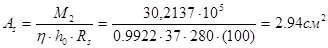 . Определение рабочей арматуры в сечении над второй от края опорой: