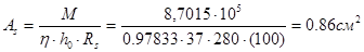 . Определение рабочей арматуры в сечении над остальными опорами: