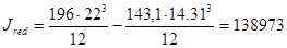 Площадь приведённого сечения Ared=196·22-143.1·14,31=2264.239 см2. Расстояние от нижней грани до центра тяжести приведённого сечения: y0=0,5h=0,5·22=11см. Момент инерции сечения (симметричного):