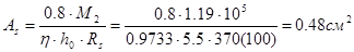не превышает 30, то можно снизить величину момента на 20% за счет благоприятного влияния распора. Тогда требуемая площадь сечения арматуры: