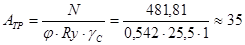 Ry – расчетное сопротивление стали сжатию по пределу текучести;
