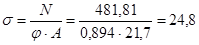 = 39 и по наибольшей гибкости находим j = 0,894.