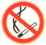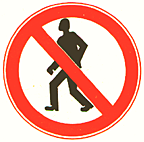 Запрещающие знаки предназначены для запрещения определенных действий и должны быть следующими: круг красного цвета с белым полем внутри, белой по контуру знака каймой и символическим изображением черного цвета на внутреннем белом поле, перечеркнутым наклонной полосой красного цвета.
