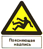 В местах, где необходимо предупреждение о возможной опасности, а передача информации с помощью сигнальных цветов или символа затруднена. Применяется вместе с табличкой с поясняющей надписью |