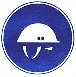 Предписывающие знаки предназначены для разрешения определенных действий работающих только при выполнении конкретных требований безопасности труда (обязательное применение средств защиты работающих, принятие мер по обеспечению безопасности труда), требований пожарной безопасности и для указания путей эвакуации и должны быть следующими: круг синего цвета с белой каймой по контуру, внутри которого находится символическое изображение белого цвета.
