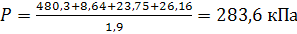 Проверяем фактическое среднее значение P действующего под подошвой фундамента.