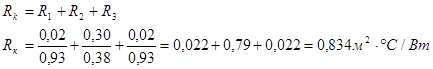 ограждающей конструкции с последовательно расположенными однородными слоями следует определять как сумму термических сопротивлений отдельных слоёв: