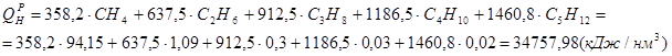 CП.Г.=1,35+0,000075∙1220=1,44(кДж/м3∙оС)