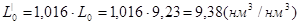 4. Теоретически необходимое количество сухого воздуха для горения топлива:
