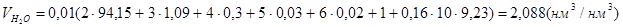 Vα=0,978+2,088+7,322=10,39 (нм3/нм3)
