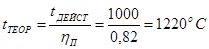 9. Определение коэффициента избытка воздуха – α при действительной температуре горения топлива tДЕЙСТ=1000оС: