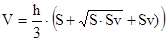 S = 22,48 м2. – площадь котлована понизу; Sv = 186,82 м2. – площадь котлована поверху.
