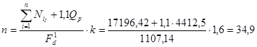 - коэффициент, учитывающий перегрузку отдельных свай от момента и горизонтальной силы, принимаемый 1,6.