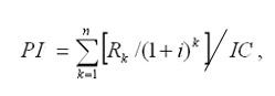 Индекс доходности инвестиций (PI) тесно связан с показателем чистой современной ценности инвестиций, но, в отличие от последнего, позволяет определить не абсолютную, а относительную характеристику эффективности инвестиций. Индекс доходности инвестиций (PI) при разовом инвестировании рассчитывается по следующей формуле: