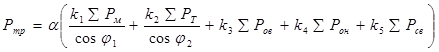 k1 = 0,6; k2 = 0,7; k3 = 0,8; k4 = 0,9; k5 = 0,7 - коэффициенты, учитывающие неоднородность потребления электроэнергии.