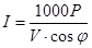 где Р - мощность токопотребителей на расчетном участке, кВт;